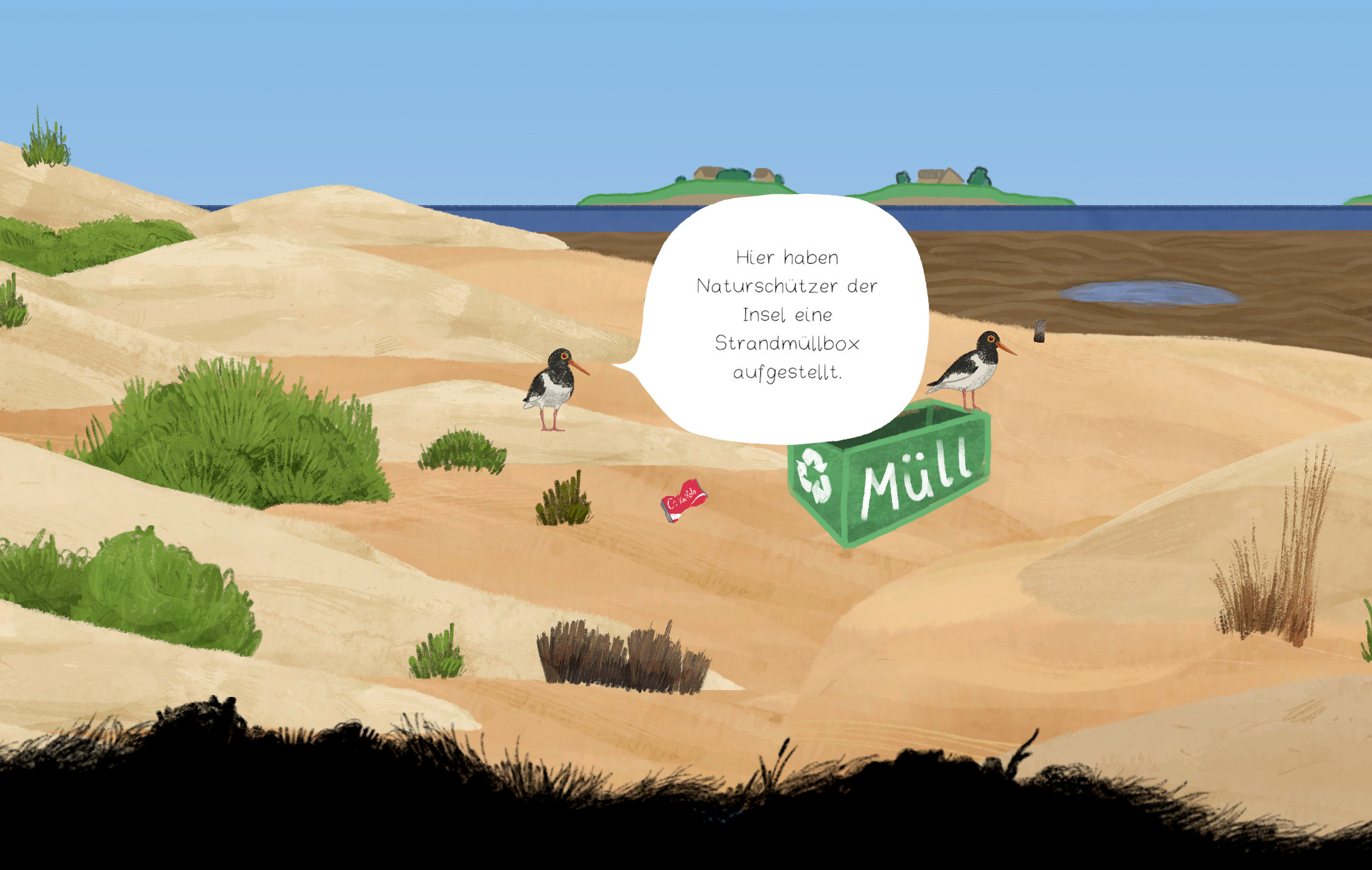 The Wadden Sea is a World Heritage Site - but what makes it so special? Join a curious little blackbird on her adventure on the island of Föhr! Explore the mysterious world of the salt marshes, the mudflats and the beaches of Föhr together in a lovingly illustrated and interactive story.